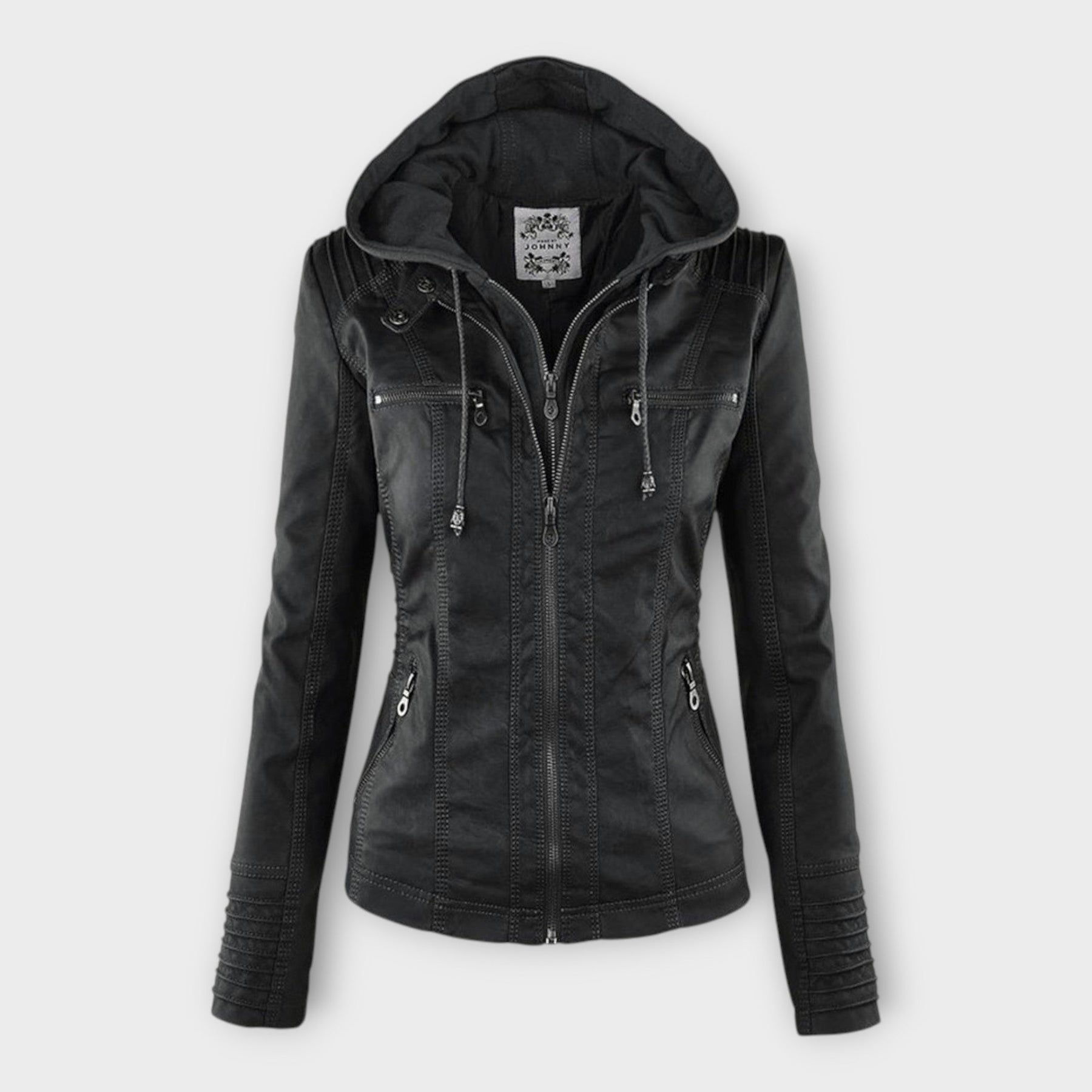 Tjaša er en moderne læderjakke med hætte og en tidløs linje, der giver dit look det perfekte touch af elegance og kant. Den alsidige stil gør det nemt at tilpasse jakken til dit daglige outfit, uanset om du går casual eller klæder dig op til en særlig anledning. Designet til at være både praktisk og sofistikeret, har jakken en blød tekstur, der giver en behagelig og elegant følelse i huden.