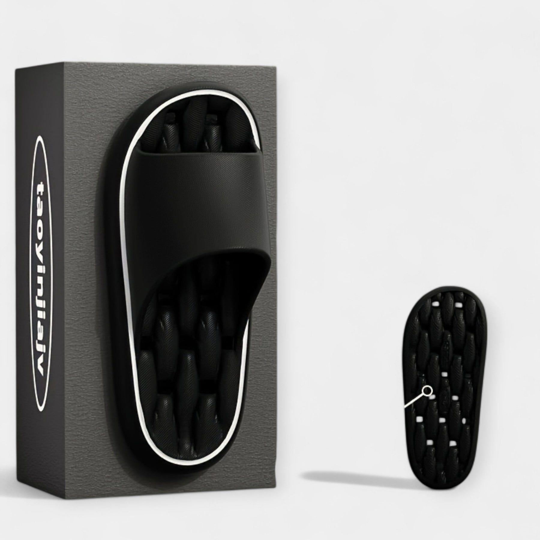 Anja - Copati Za Doma In Plažo S Protizdrsenim Podplatom so elegantni copati, ki združujejo udobje in stil za domačo uporabo ter sproščene trenutke na plaži. Mehka, okrepljena podplat nudi oporo skozi ves dan, ribasta površina in sodoben monokromski dizajn ustvarjata brezčasni videz, ki se poda k različnih opravam.