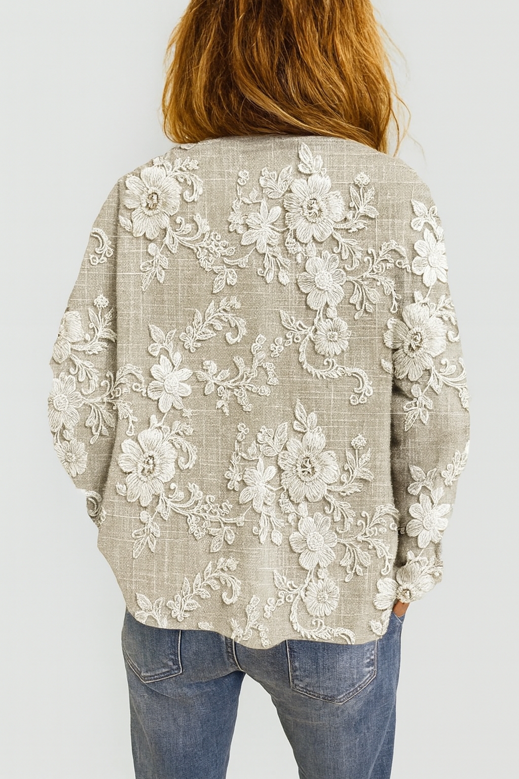 Elegantni cvetlični kos z ravnim krojem dopolni različne outfite z brezčasnim slogom.