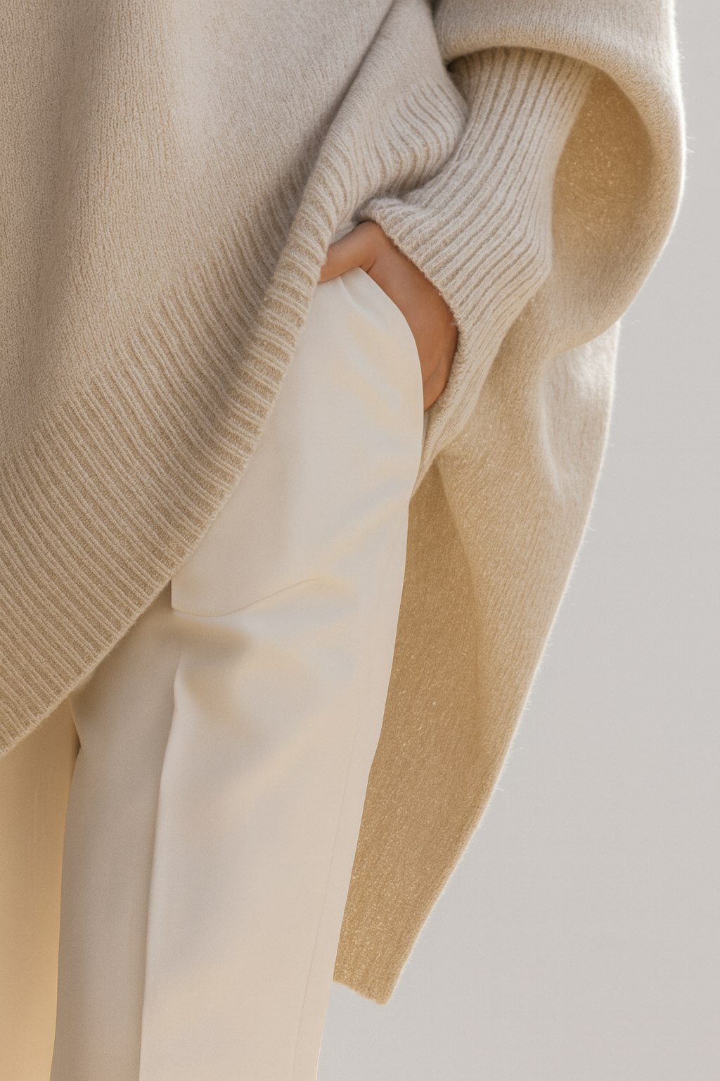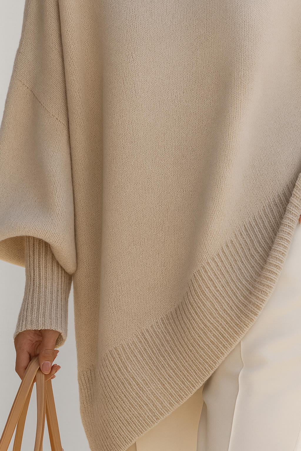 Z mehko pletenino nudi izjemen občutek na koži, oversize kroj nežno prilagodi silhueto ter ustvari sproščen, a prefinjen videz. Bež odtenek je klasičen in vsestransko se poda k številnim kombinacijam skozi sezono.