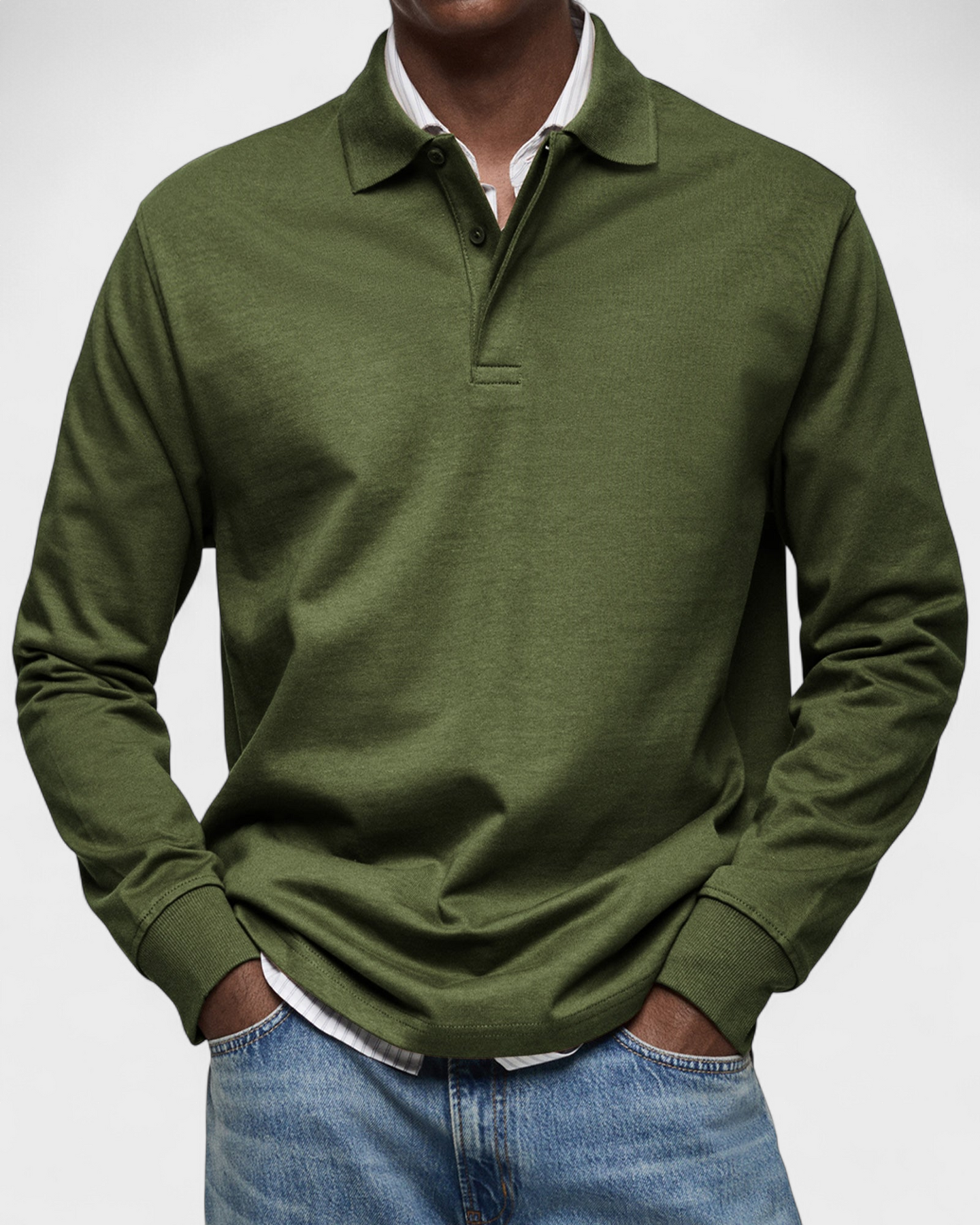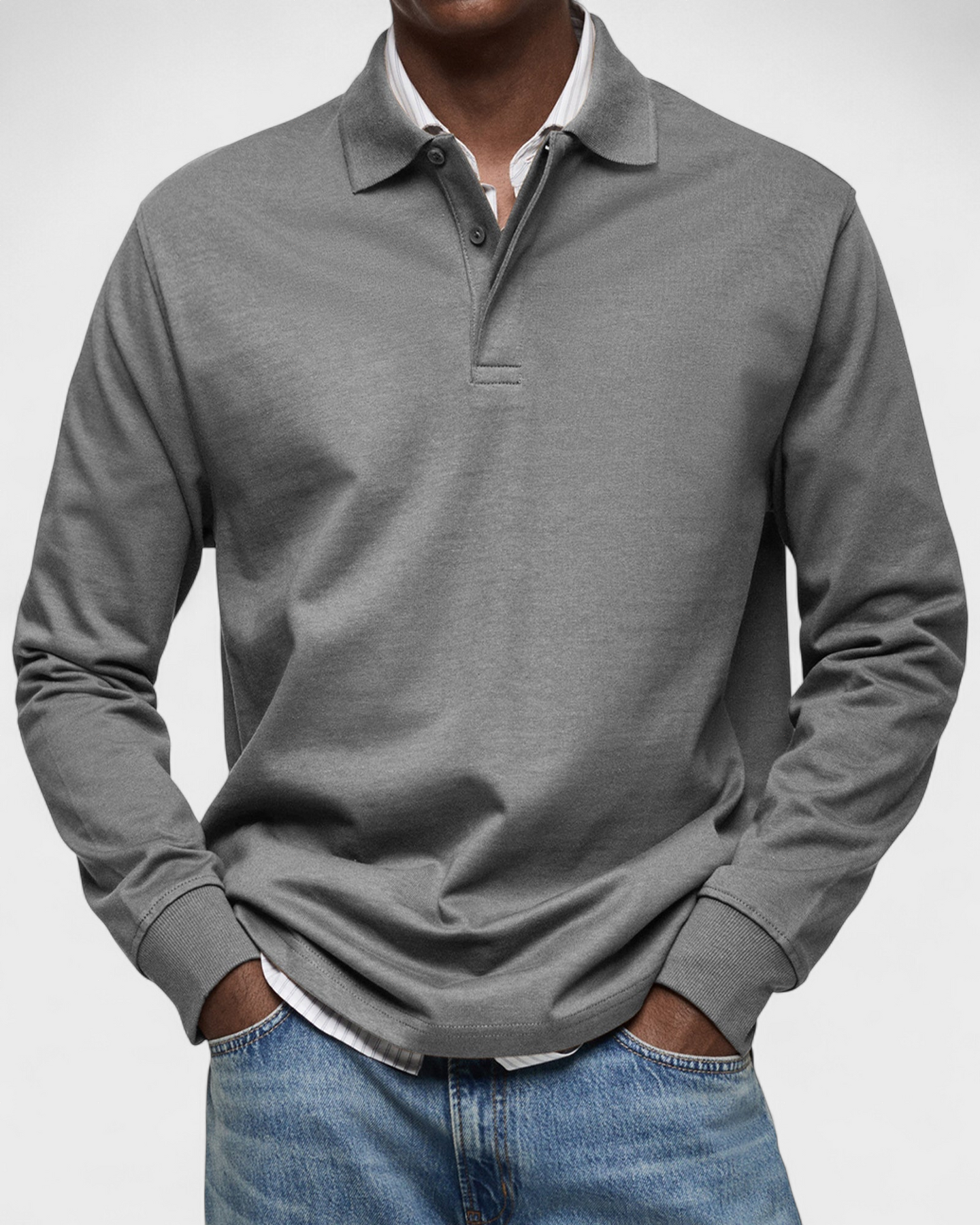 Elegantna polo z dolgimi rokavi, ki združuje brezčasni stil z udobjem; popolnoma dopolni različne modne kombinacije.